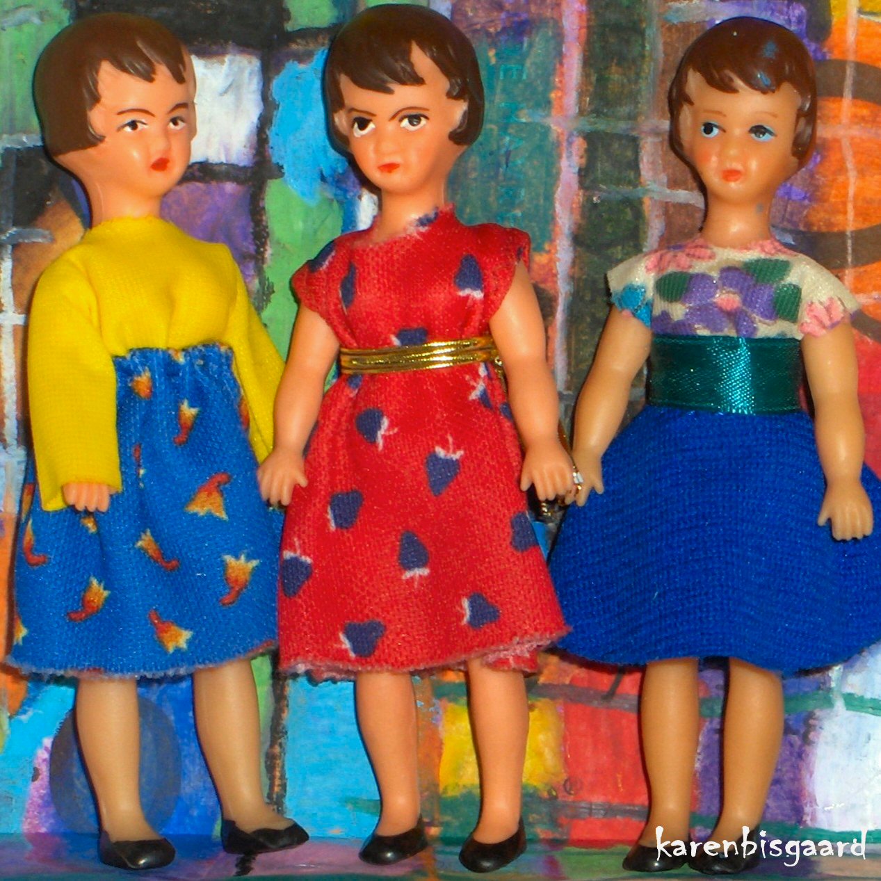 Liddle Kiddle klondukker klædt i håndstrikkede kjoler.